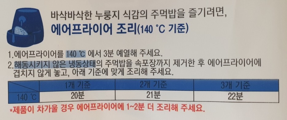 [바삭바삭한 누룽지 식감의 주먹밥을 즐기려면 - 에어프라이어 조리(140℃ 기준)]