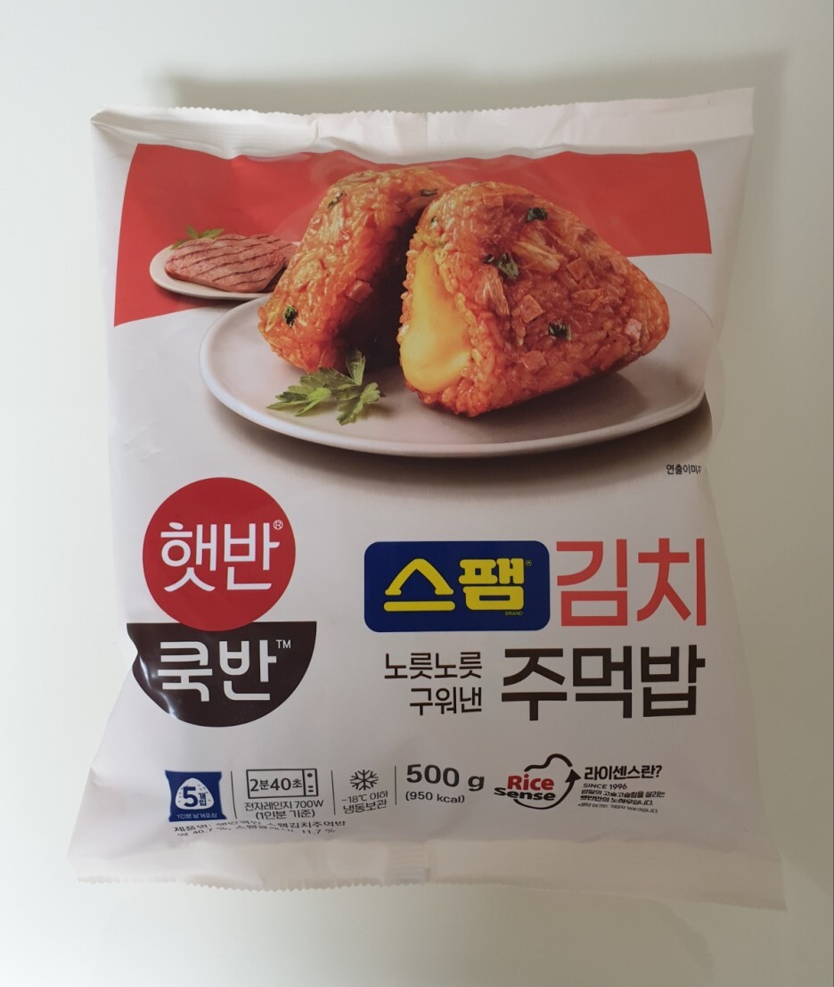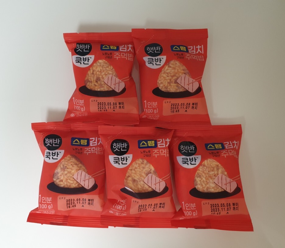 이번에 먹어본 음식은 햇반 쿡반 스팸 김치 주먹밥 입니다.