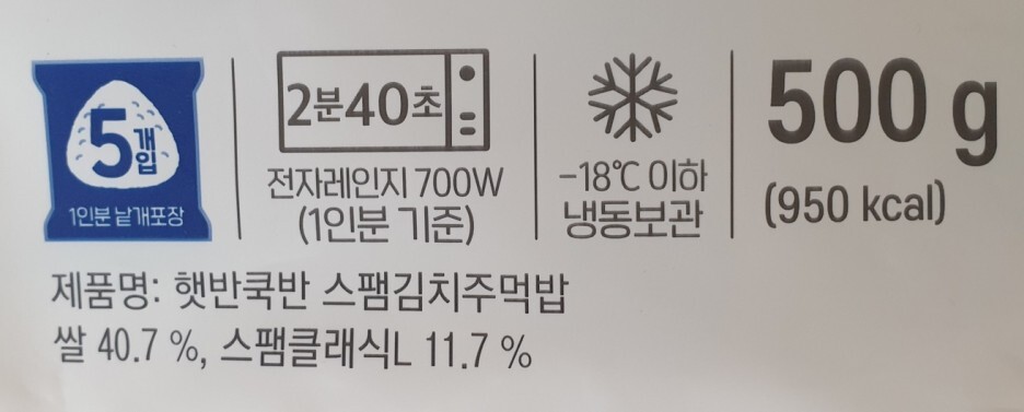 제품명 : 햇반쿡반 스팸김치주먹밥