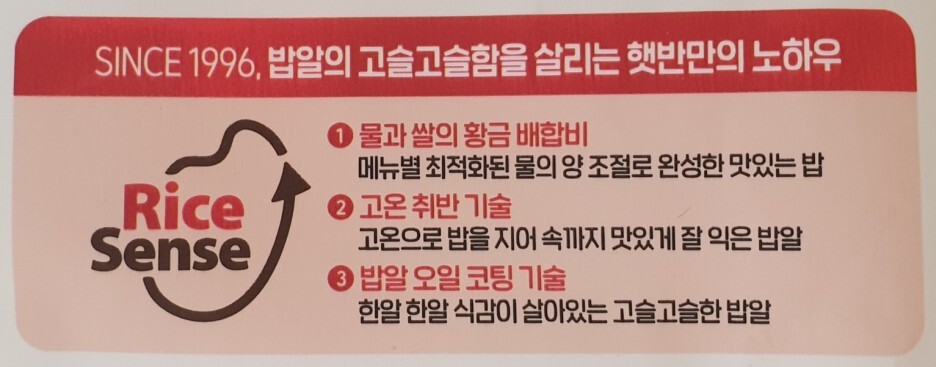 - 밥알 오일 코팅 기술 : 한알 한알 식감이 살아있는 고슬고슬한 밥알