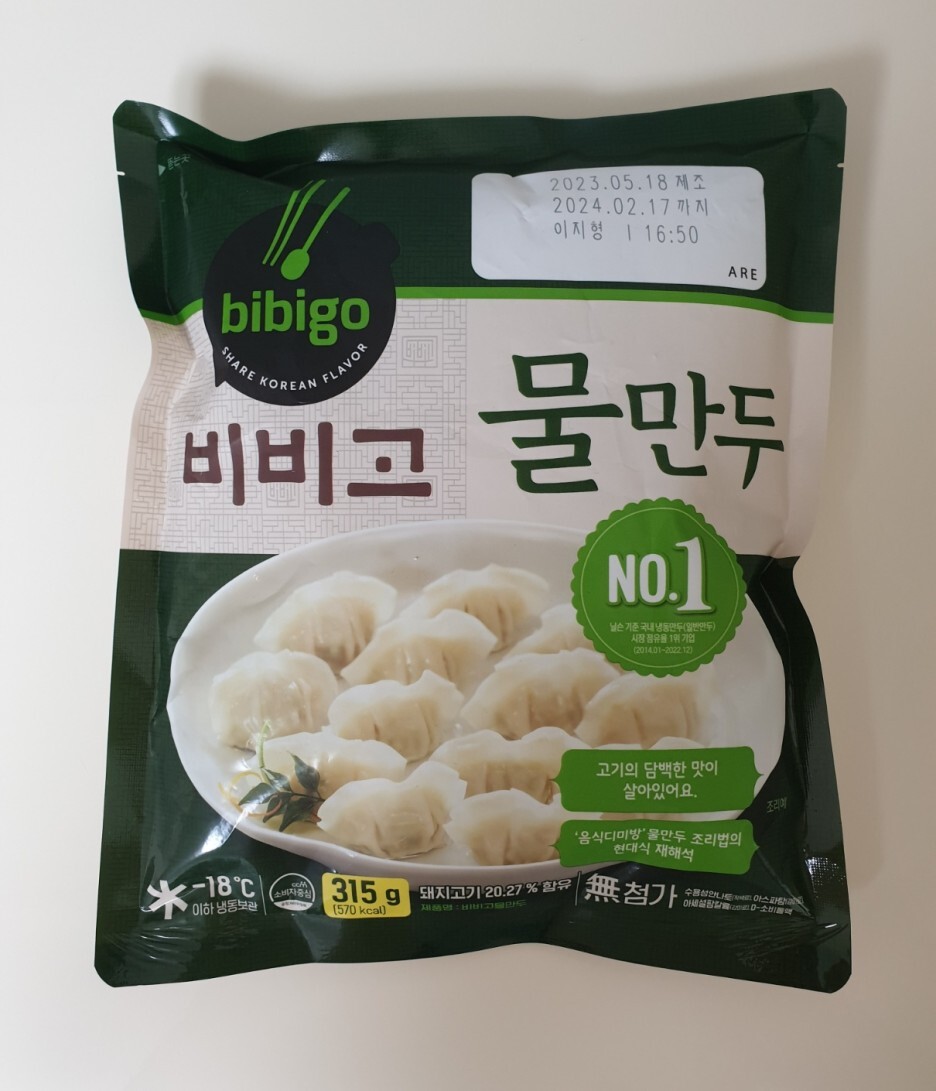 이번에 먹어본 음식은 비비고 물만두 입니다.