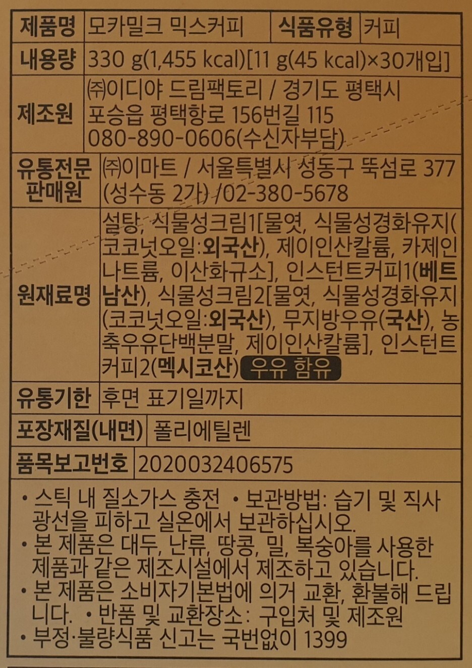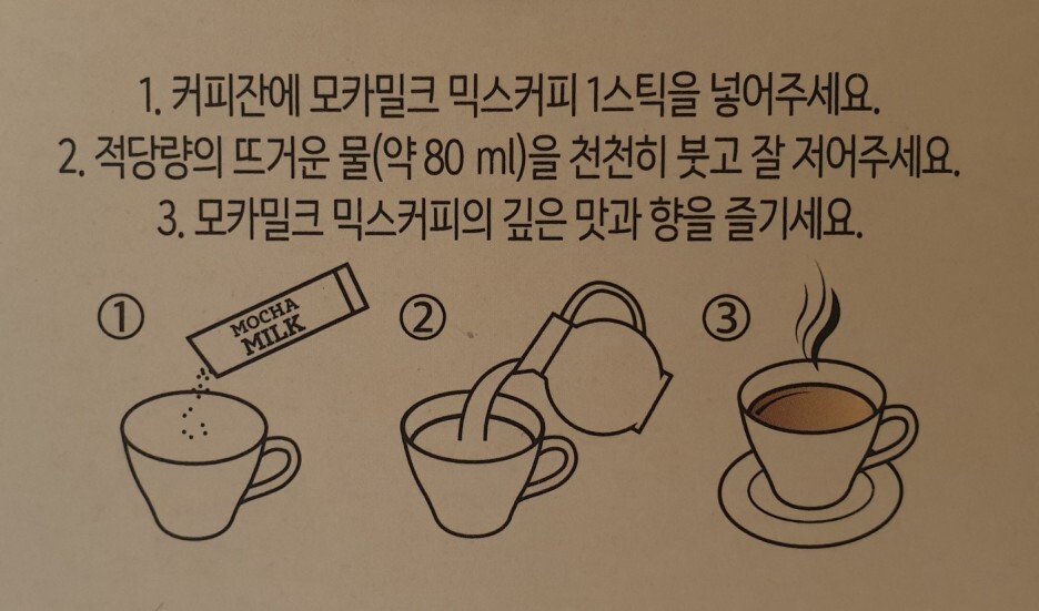 - 모카밀크 믹스커피의 깊은맛과 향을 즐기세요.