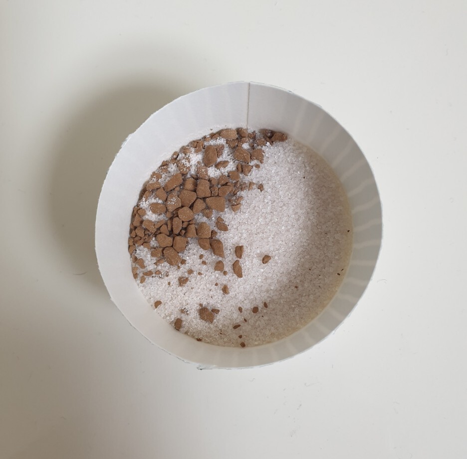 - 커피잔에 모카밀크 믹스커피 1스틱을 넣어주세요.