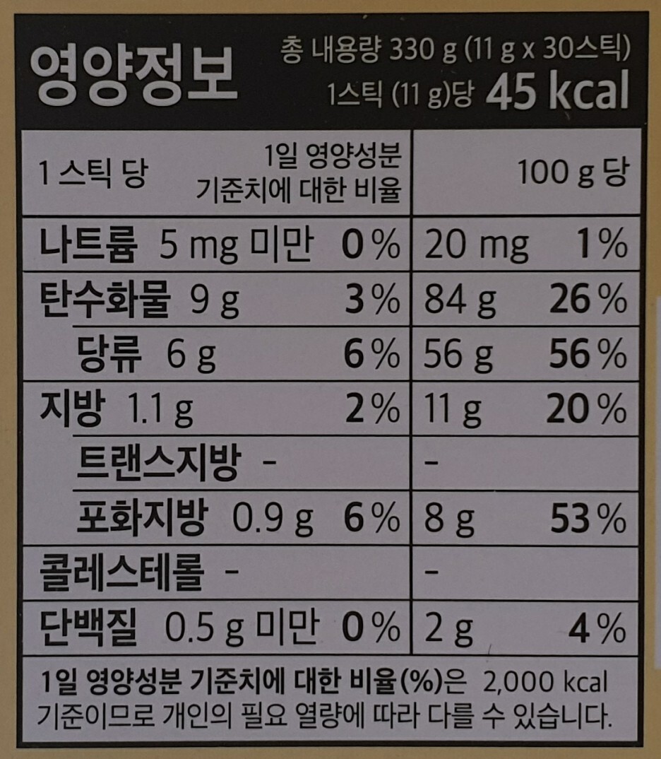 330g (1,455kcal) [11g(45kcal) x 30개입]