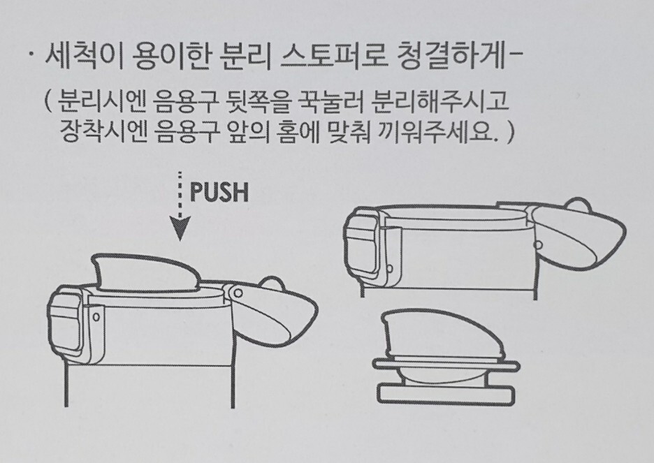 (분리 시에는 음용구 뒷쪽을 꾹 눌러 분리해주시고, 장착 시에는 음용구 앞의 홈에 맞춰 끼워주세요)