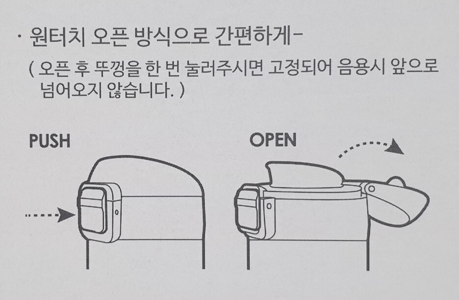 (오픈 후 뚜껑을 한 번 눌러주시면 고정되어 음용시 앞으로 넘어오지 않습니다.)
