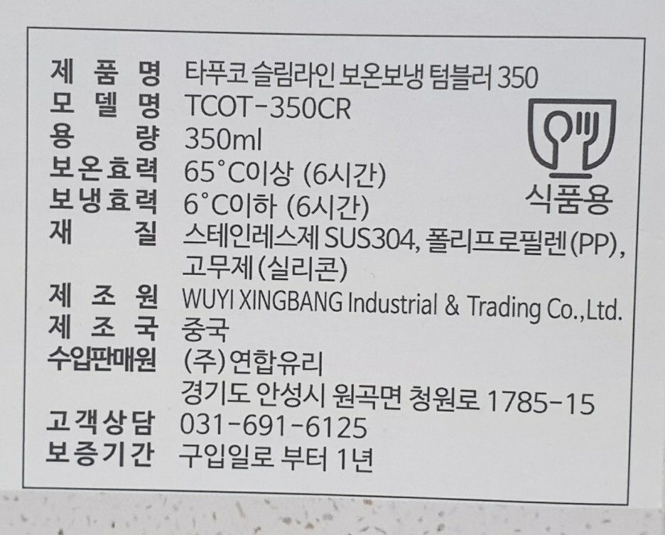 - 제품명: 타푸코 슬림라인 보온보냉 텀블러 350