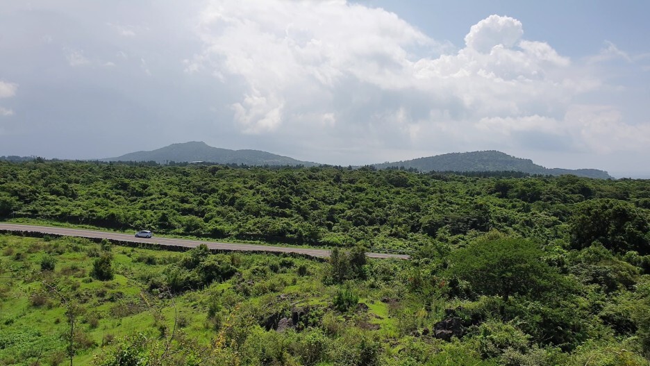 사진의 오른쪽 아래를 보시면 곶자왈의 입구와 주차 공간이 보입니다.
