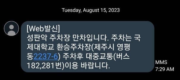 오전 7시 30분 쯤에 성판악 주차장이 만차라는 문자가 왔다.