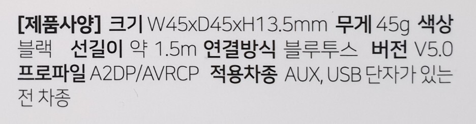 이번에 구매한 제품은 블루투스 미지원 차량을 위한 블루투스 핸즈프리 입니다.