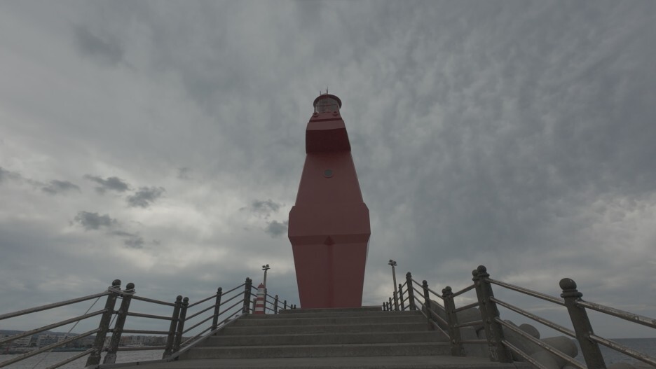 가까이에서 바라보는 빨간 등대의 모습