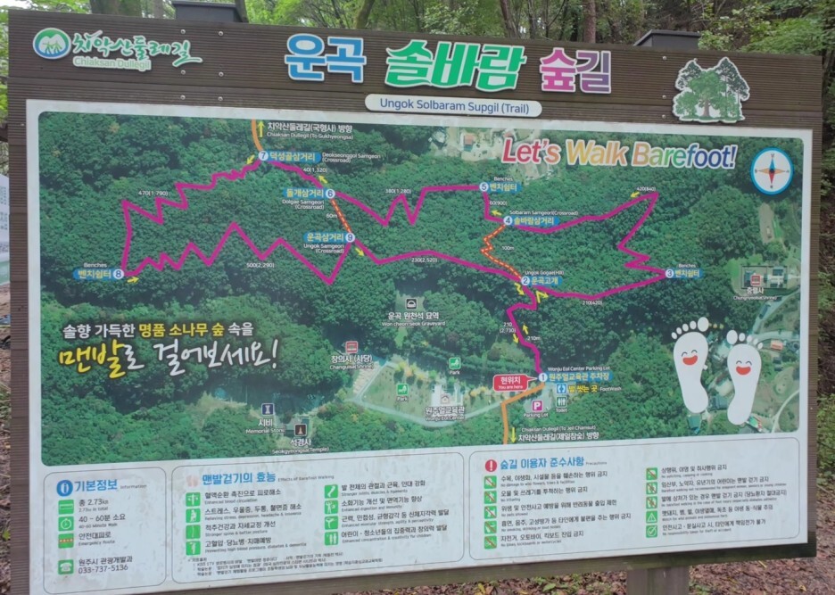 5. 주차: 숲길 입구 건너편 주차장에 무료 주차 가능