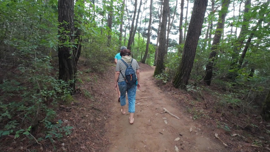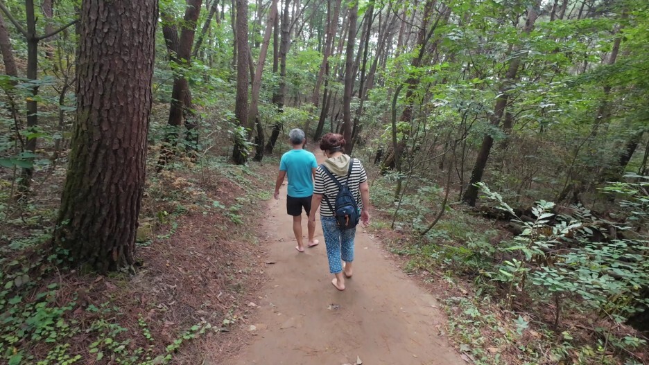 부모님은 저처럼 맨발 걷기가 처음이 아니기 때문에 아주 잘 걸어가고 있습니당