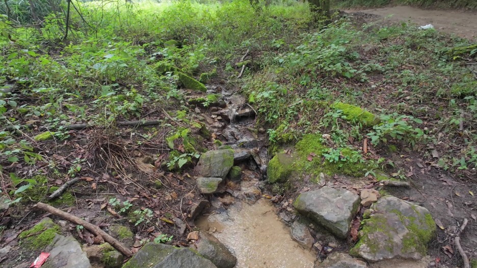입구로 오니까 흐르는 물이 있어서,