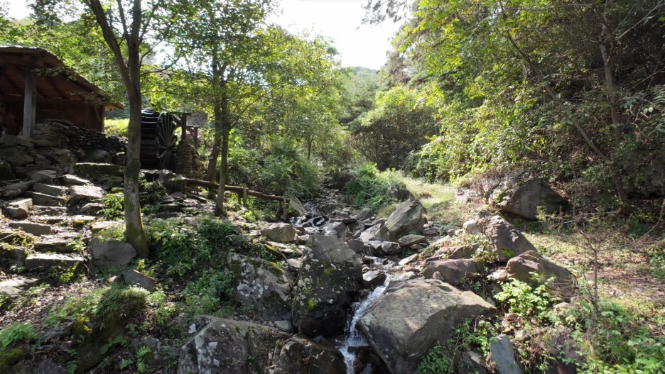걸어가는 길에 작은 폭포와 물레방아도 있었습니다.