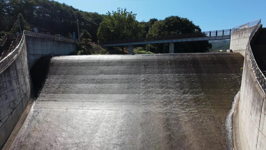 저수지의 물이 흘러 나가는 곳인 것 같습니다.