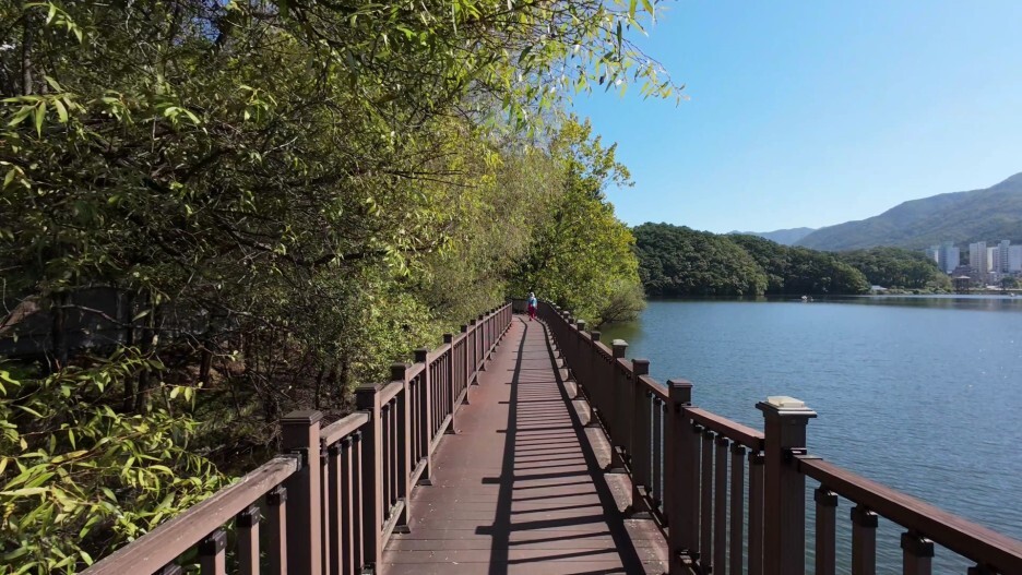호수뷰를 계속 바라보면서 걸을 수 있습니다.