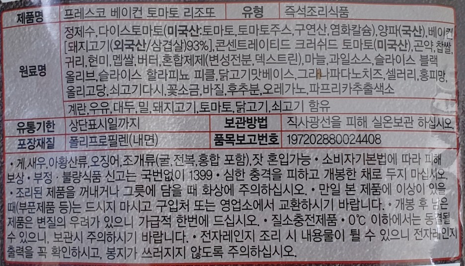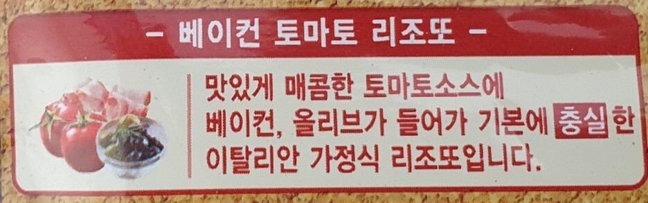 이번에 먹어본 음식은 오뚜기 프레스코 베이컨 토마토 리조또 입니다.