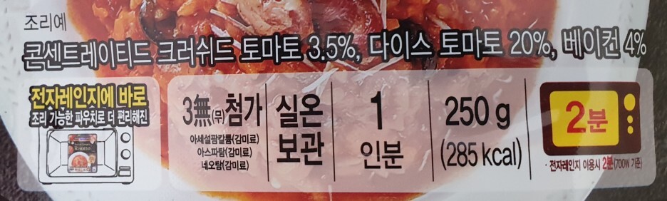 콘센트레이티드 크러쉬드 토마토 3.5%, 다이스 토마토 20%, 베이컨 4%
