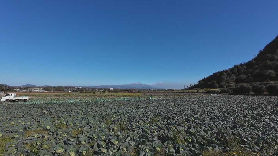 단산 근처에 있는 산방산이 잘 보이네요.