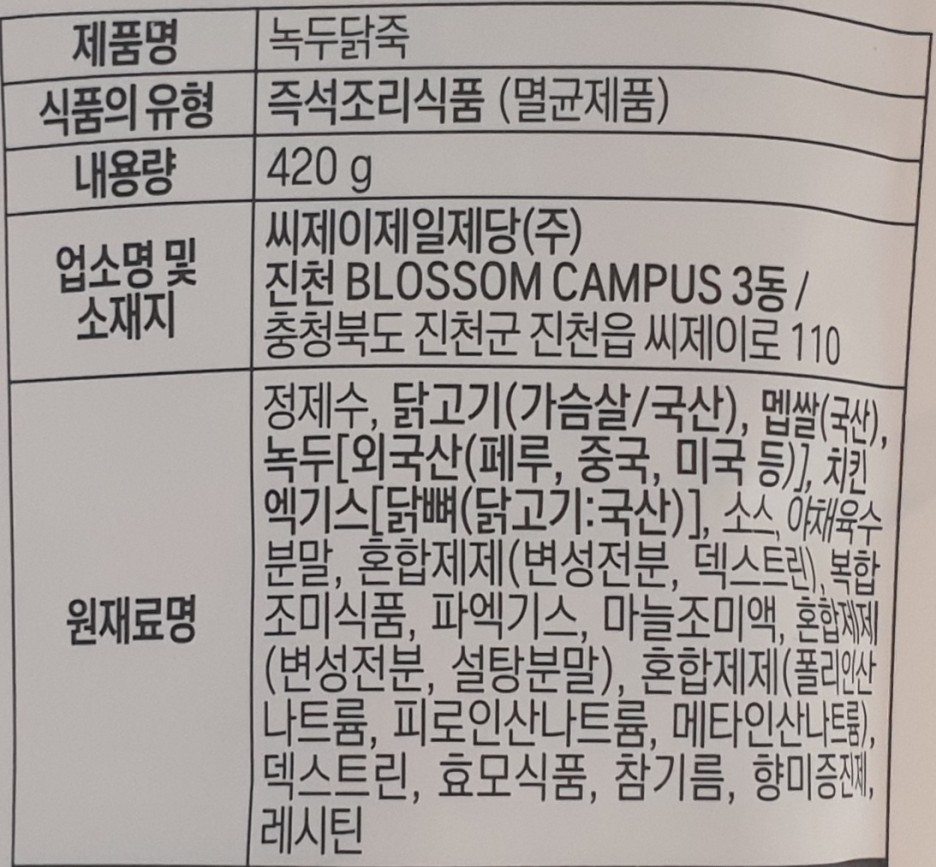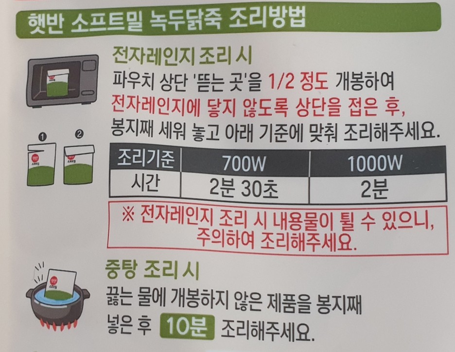 [햇반 소프트밀 녹두닭죽 조리방법]
