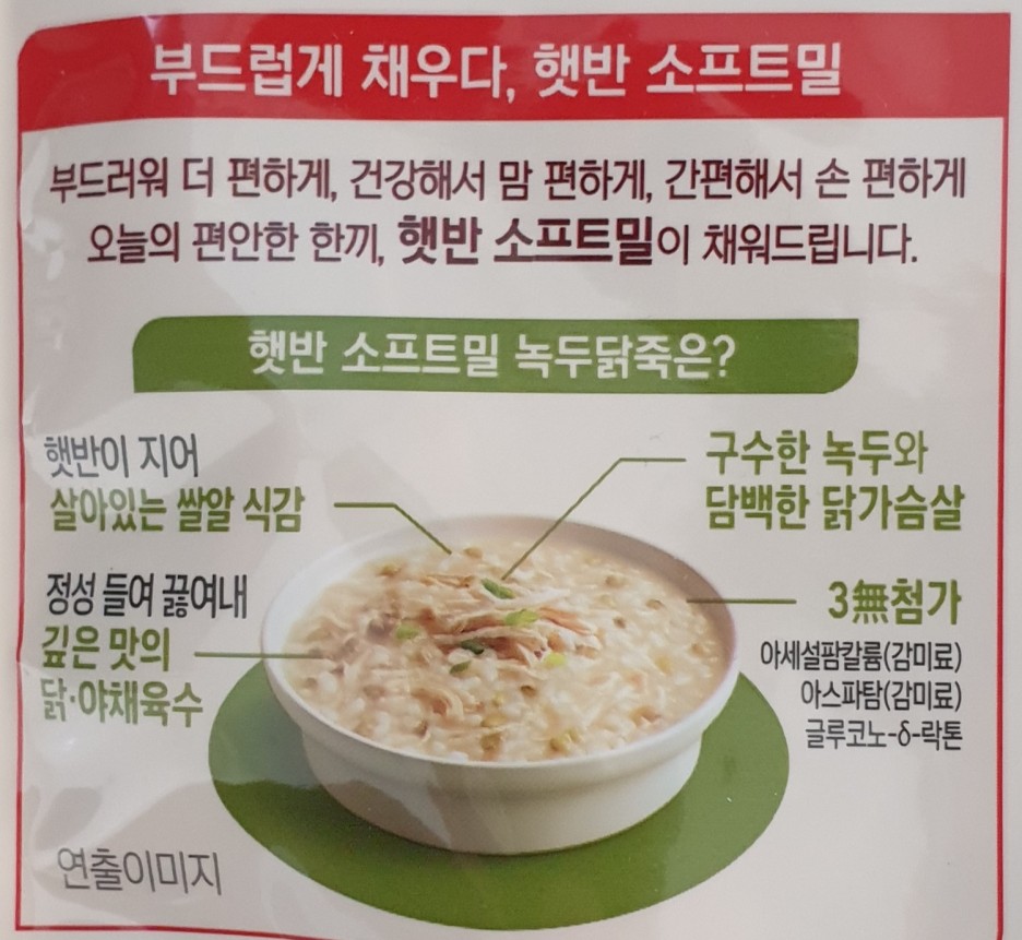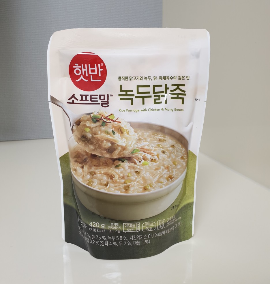 이번에 먹어본 음식은 햇반 소프트밀 녹두닭죽 입니다.