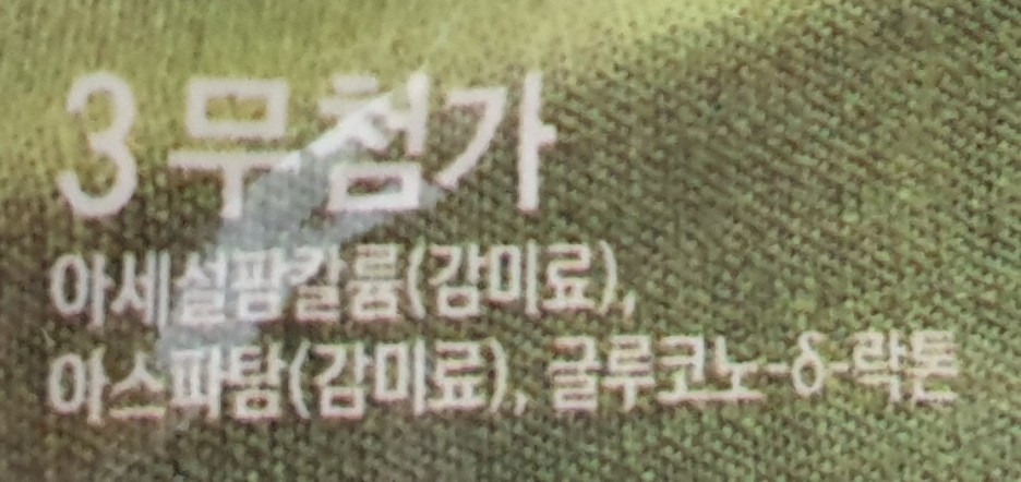 3무첨가 - 아세설팜칼륨(감미료), 아스파탐(감미료), 글루코노-δ-락톤