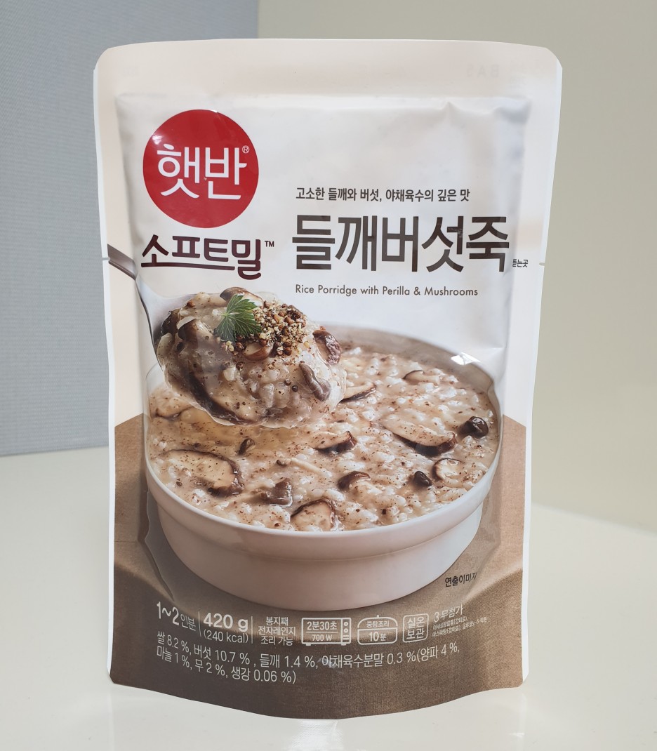 이번에 먹어본 음식은 햇반 소프트밀 들깨버섯죽입니다.