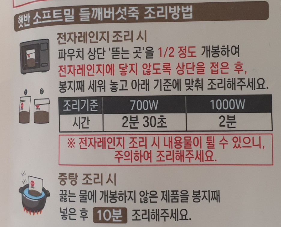 [햇반 소프트밀 들깨버섯죽 조리방법]