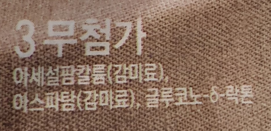 3무첨가 - 아세설팜칼륨(감미료), 아스파탐(감미료), 글루코노-δ-락톤