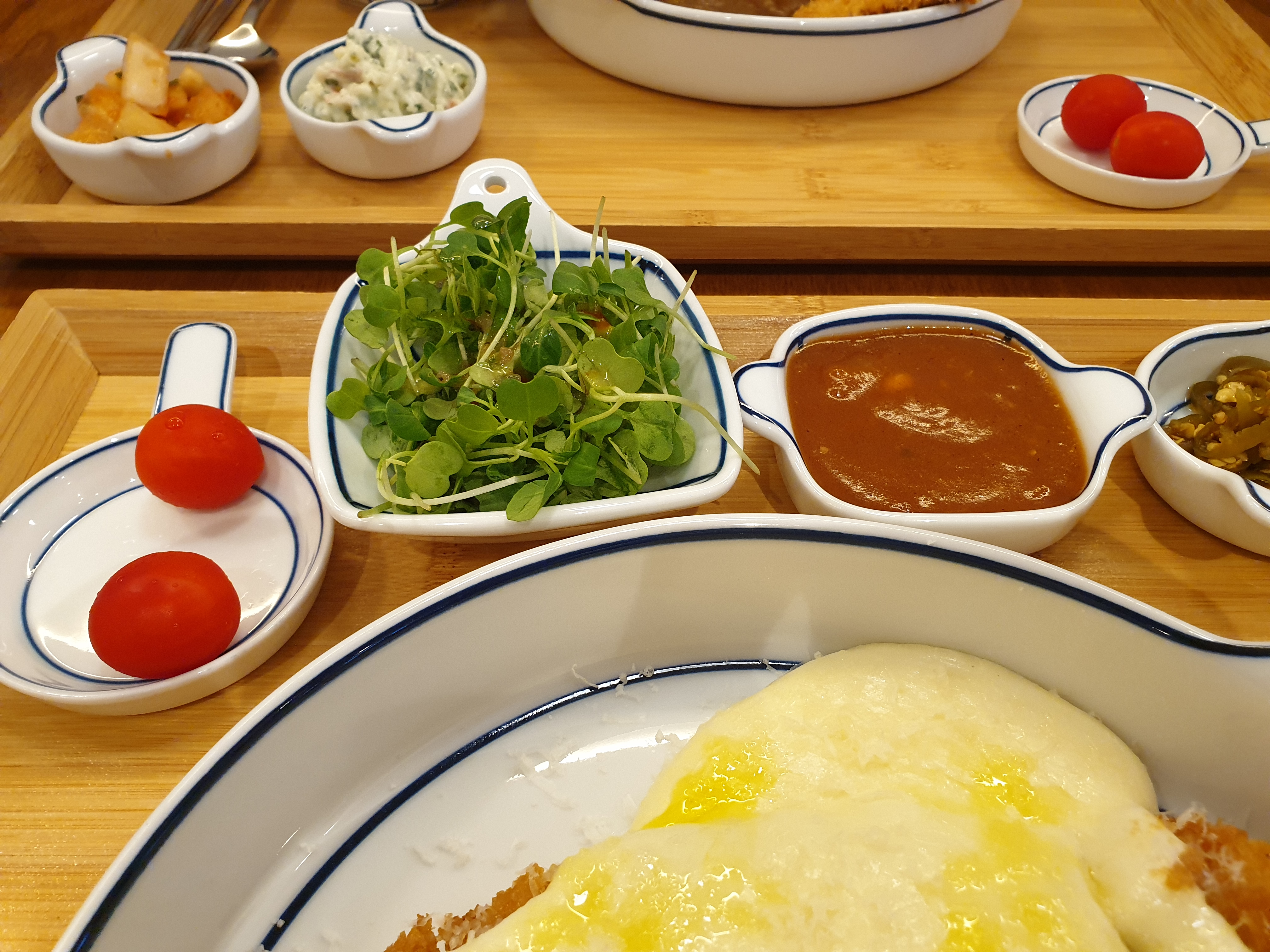 첫번째 메뉴인 크림치즈 돈까스 정식이 나왔습니다