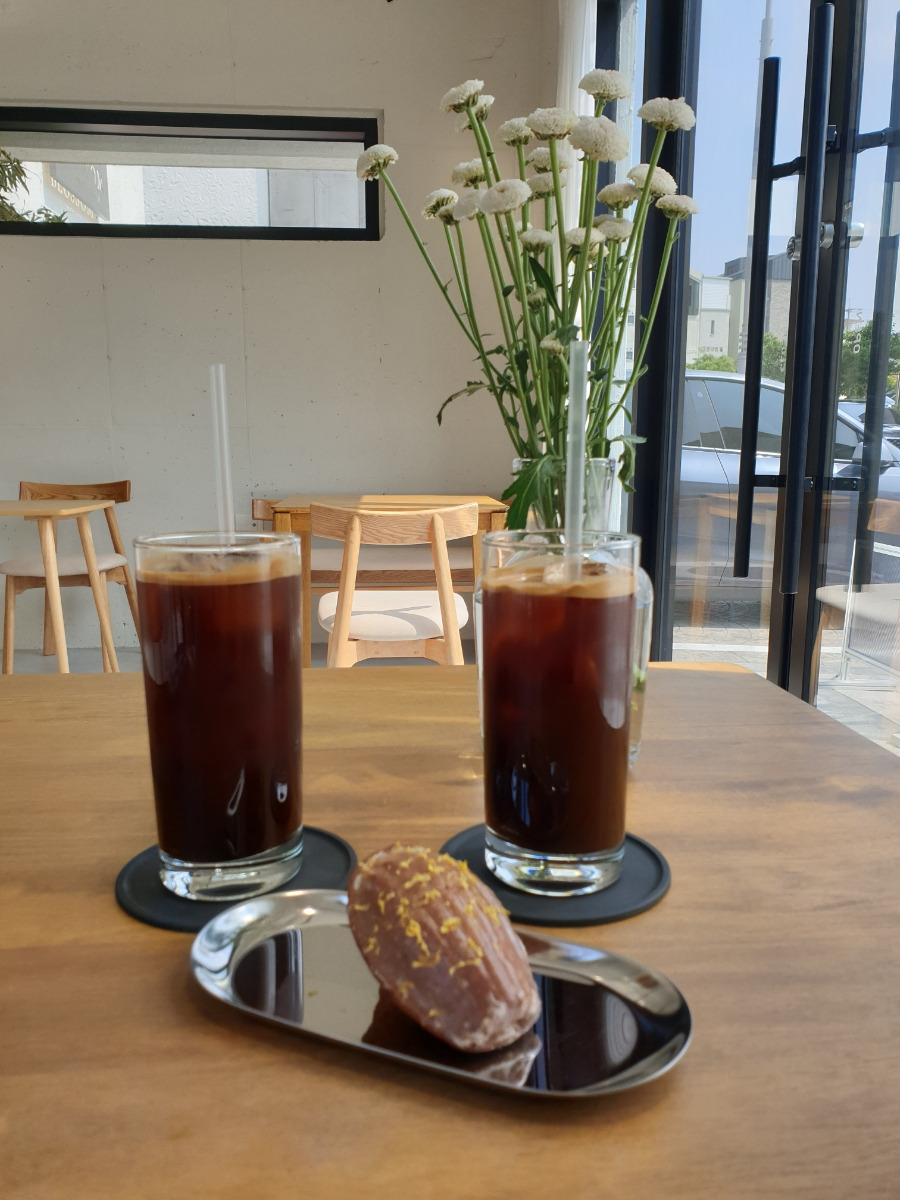 저희는 아이스 아메리카노 두잔과 레몬 마들렌을 주문했습니다