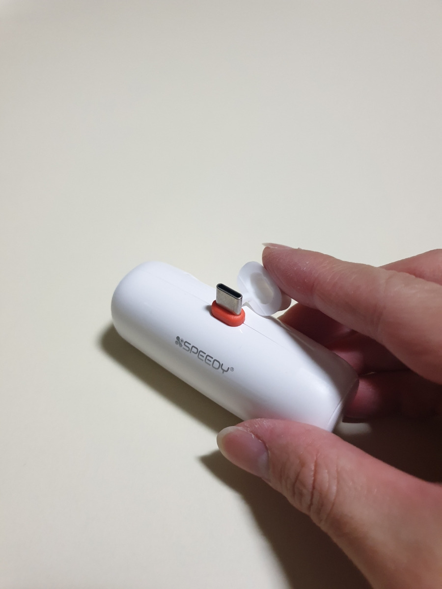 위쪽에 캡을 열어서 핸드폰과 도킹하여 충전할 수 있습니다