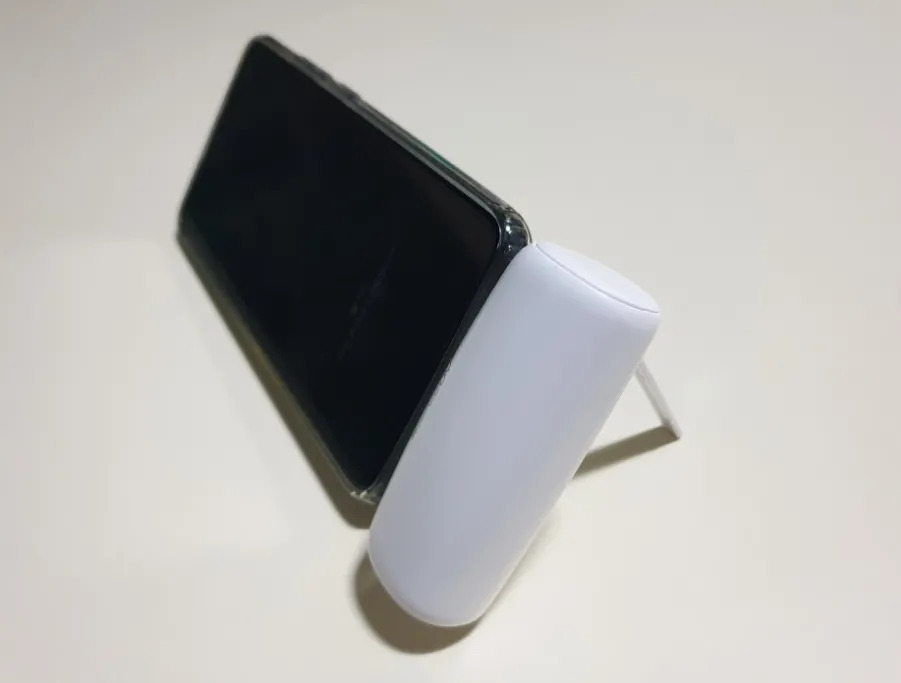 보조배터리 뒤쪽에 있는 바를 열어서 핸드폰을 거치할수도 있습니다