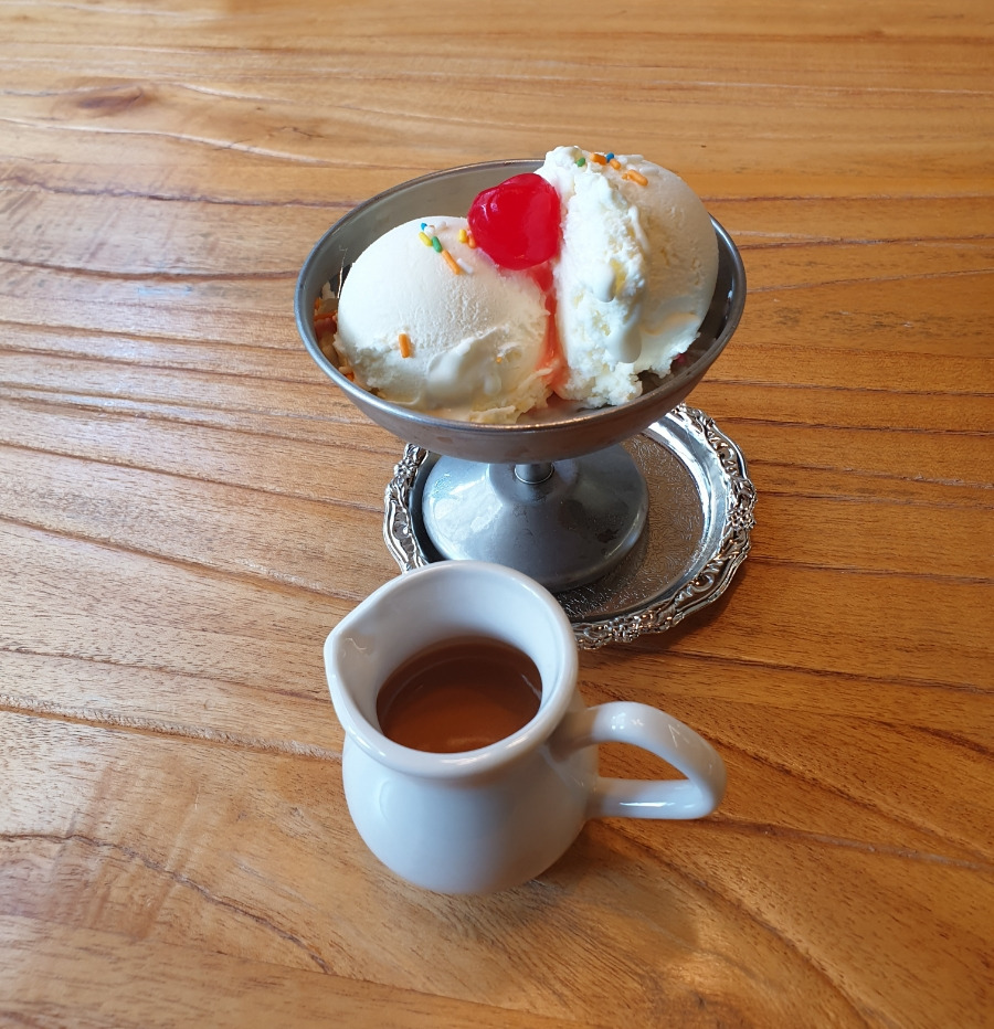 저희는 아이스 아메리카노, 아포가토, 지름떡을 주문했습니다