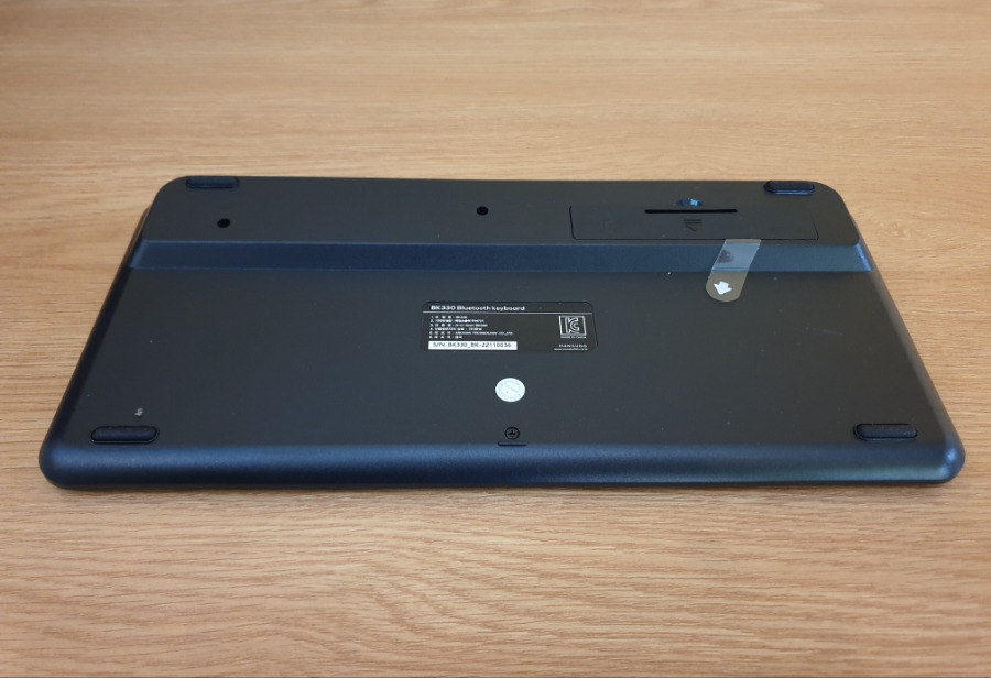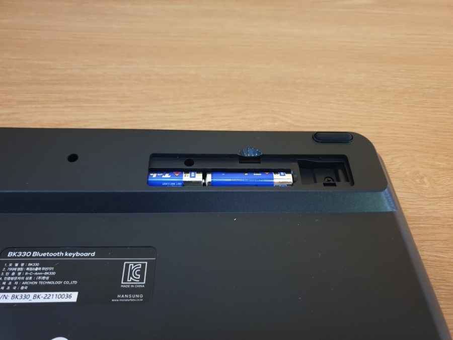 키보드를 뒤집으면 건전지를 넣는 부분이 나옵니다