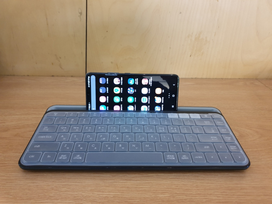 저는 스마트폰과 키보드를 연결한 뒤 키보드 상단에 거치해서 사용하고 있습니다