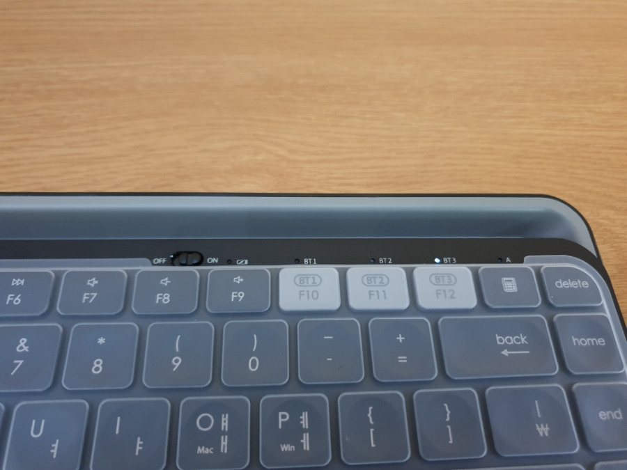 키보드의 위쪽 부분에는 태블릿이나 스마트폰을 거치할 수 있는 부분이 있습니다