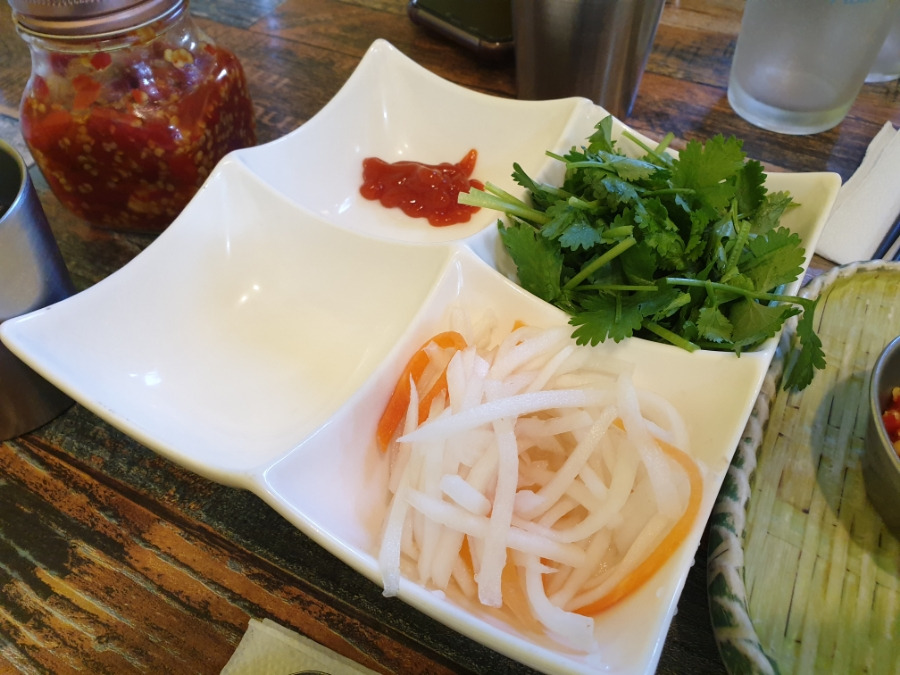 고수는 이렇게 따로 담아서 나오기 때문에, 고수를 못먹는 사람도 부담 없이 먹을 수 있습니다