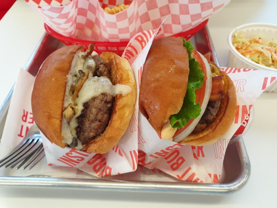 왼쪽이 트러플 머쉬룸 버거, 오른쪽이 베이컨 치즈 버거 입니다.