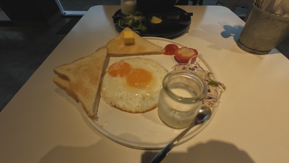 저는 토스트, 달걀 후라이, 요거트를 먹었습니다.