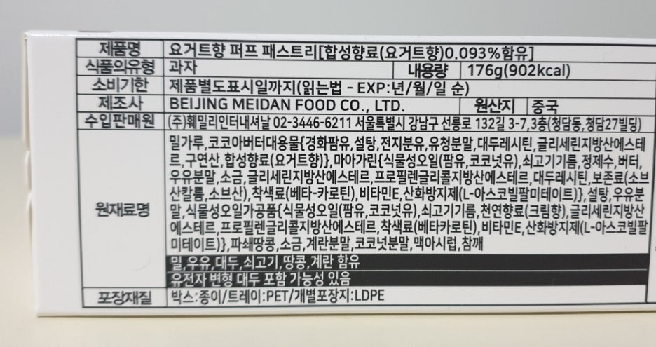 이번에 먹어본 음식은 요거트향 퍼프 패스트리 입니다.