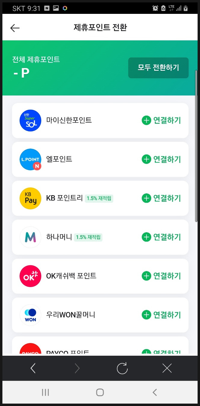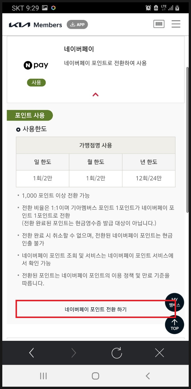 '네이버페이 포인트 전환하기' 터치