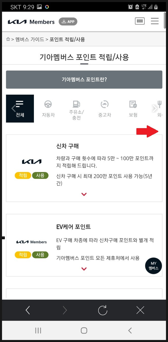 '기아 멤버스 포인트 바로가기' 터치