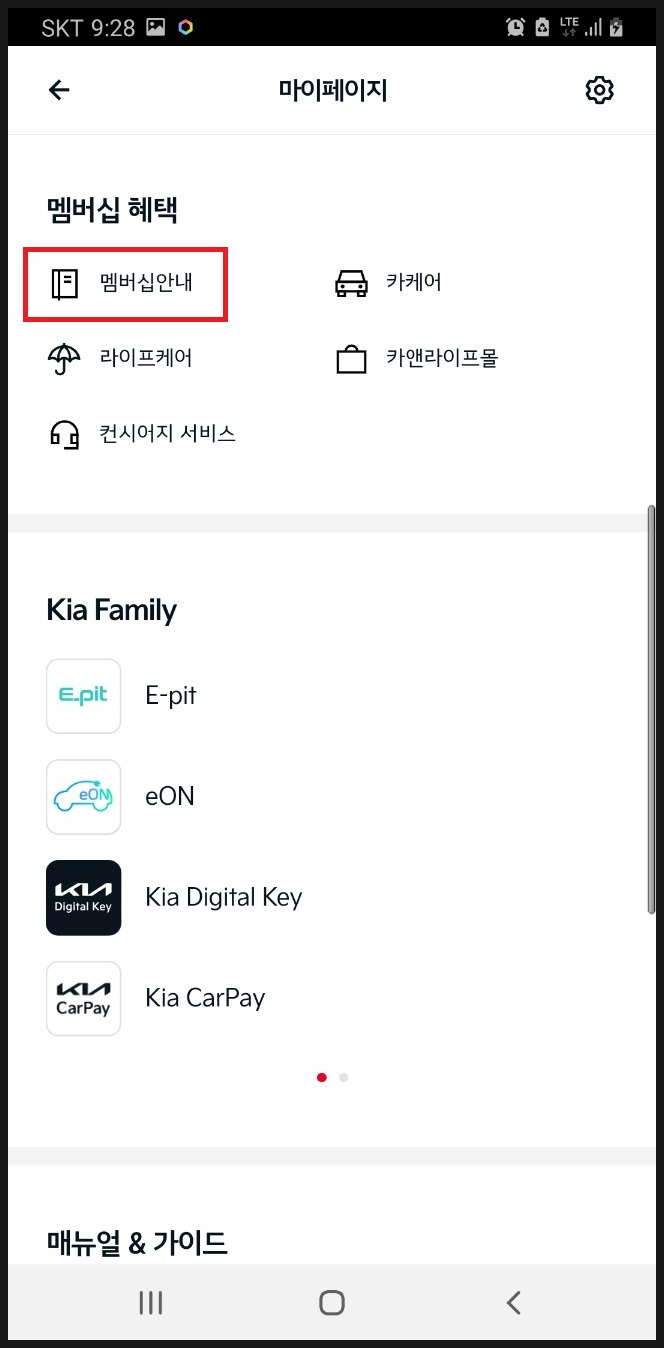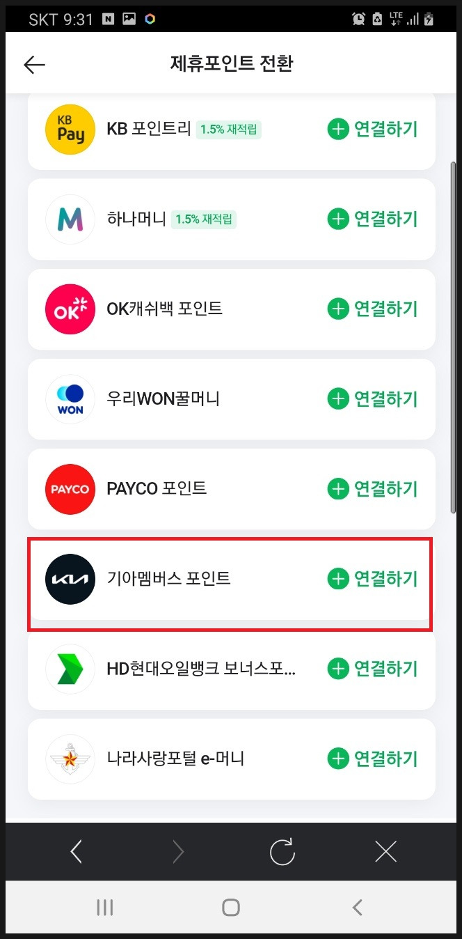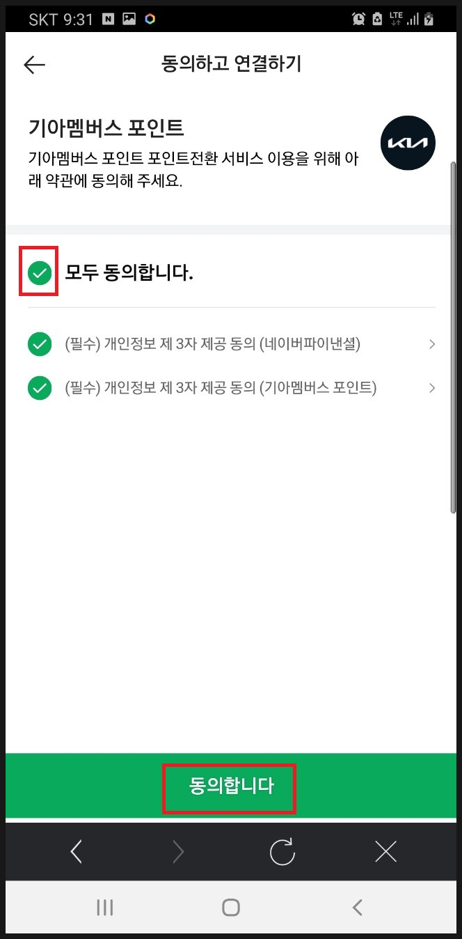 '기아멤버스 포인트 연결하기' 터치