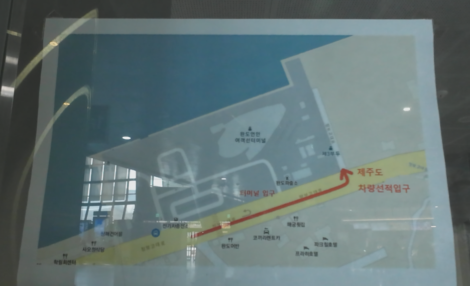 배 안에 차량 주차를 마치면, 들어왔던 곳으로 그대로 나와서 터미널로 가면 됩니다
