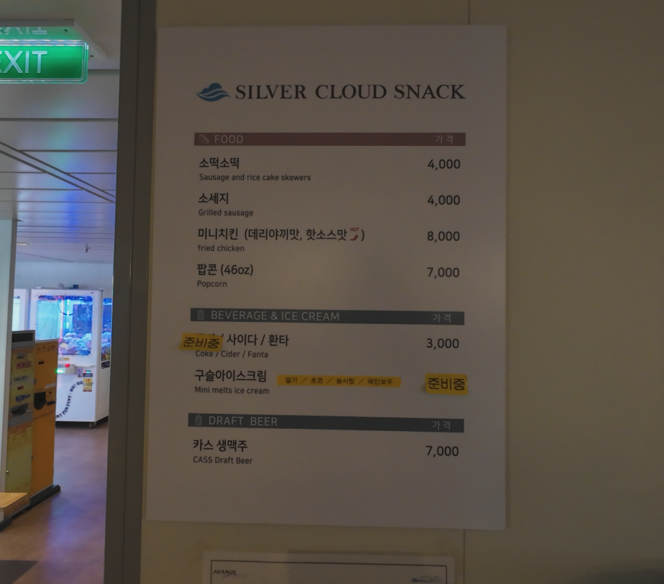 배 안 곳곳에 안내가 잘 되어 있어서 좌석을 찾는 것은 어렵지 않았습니다