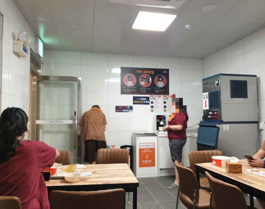 참고로 한강라면은 찜질공간에서는 먹을 수 없고, 사진과 같이 별도의 취식 공간에서만 먹을 수 있습니다