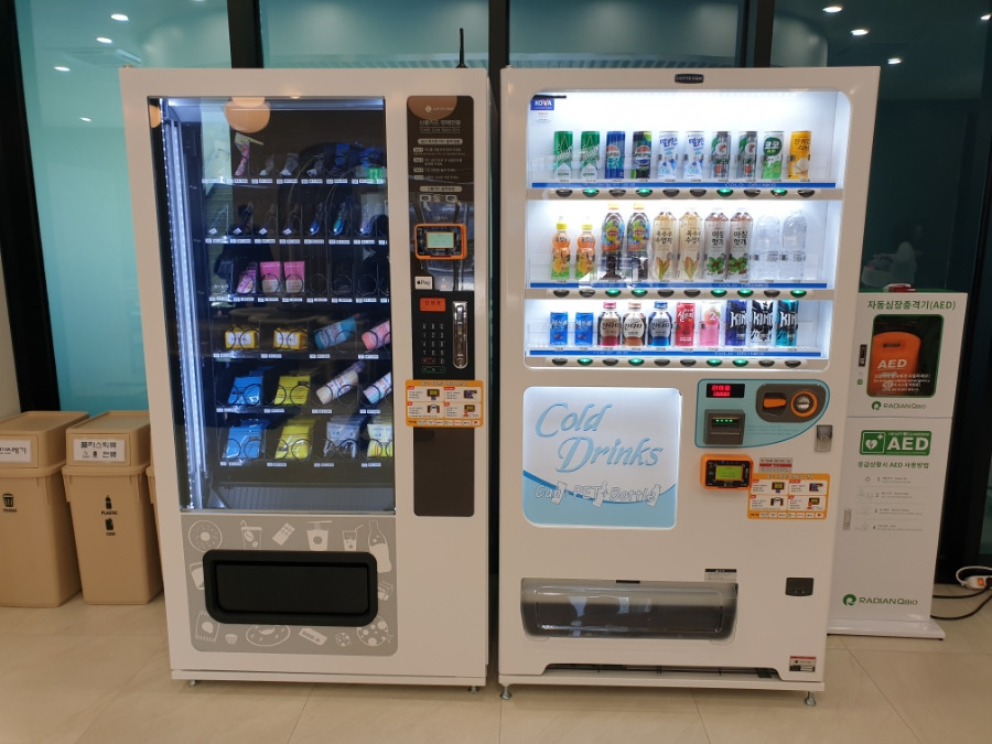 자판기에서 다양한 음료와 음식을 구매할 수 있습니다