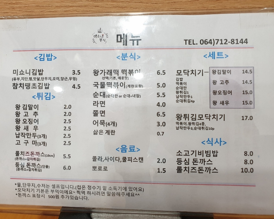 오늘은 신제주에 있는 미쇼니분식 노형점에 다녀왔습니다